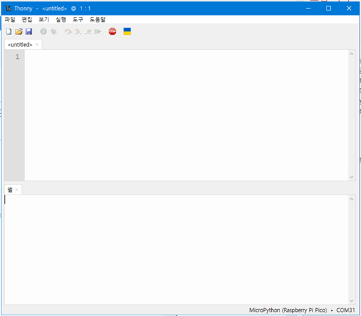 (12) Thonny 코딩 프로그램을 설정이 완료 되면 에디터 화면이 나옵니다.