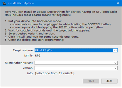 (17) MicroPython variant 는 PICO 보드를 선택해 줍니다.