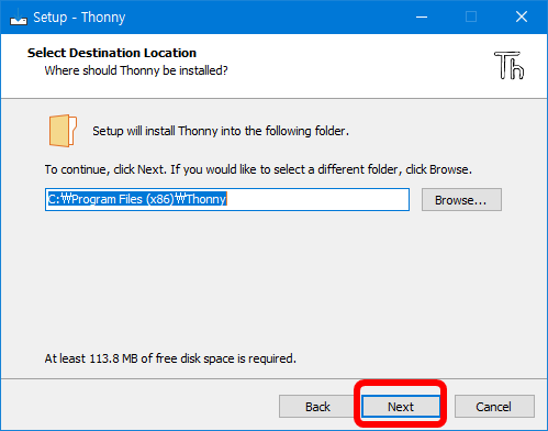 (5) 설치할 경로를 설정 합니다. NEXT 버튼을 눌러 진행 합니다.