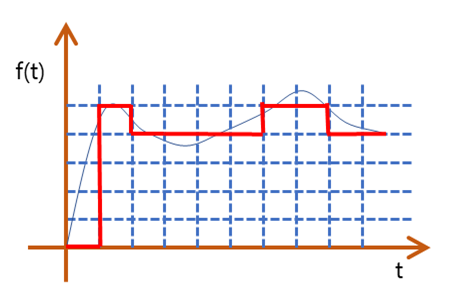 양자화는 샘플링된 아날로그신호를 일정한 전압 레벨의 구간을 나눈 영역에 강제적으로 대응 시키는 과정입니다.