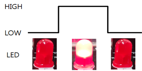 led1.value = True # led1 객체 value 값에 True 하면 led가 켜집니다.