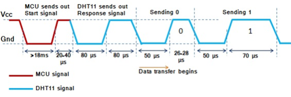 MCU에서는 18ms의 Trigger 신호를 Ative Low로 출력하게 되면 보내주시면 이후부터는 40bit의 데이터가 입력이 됩니다.