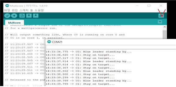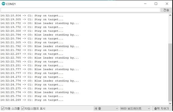 // 시리얼 포트로 C0: Blue leader standing by... 출력