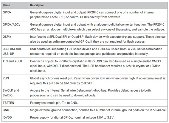 1. rp2040 MCU 구조 및 핀맵
