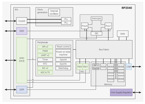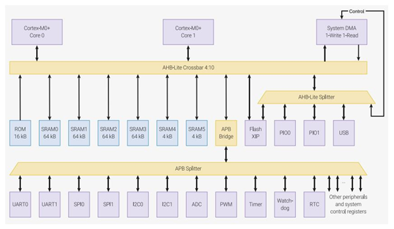 rp2040은 아래와 같은 내부 구조를 가지고 있습니다.