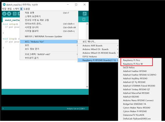 3. arduino IDE를 이용한 피코보드 개발환경