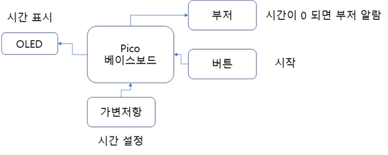 타이머 구동을 위해서 버튼, 부저, OLED, 가변저항(ADC) 기능이 필요합니다.