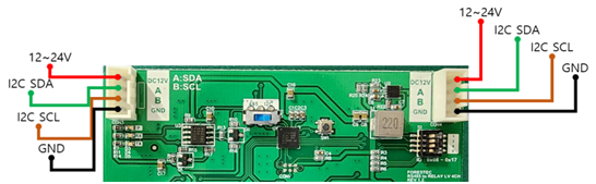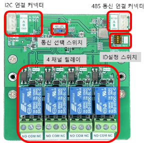 4채널 릴레이를 I2C 또는 RS485 통신을 이용하여 제어를 하는 제품 입니다.