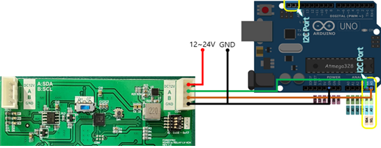 A 라인에 I2C SDA 연결 / B 라인에 I2C SCL 연결