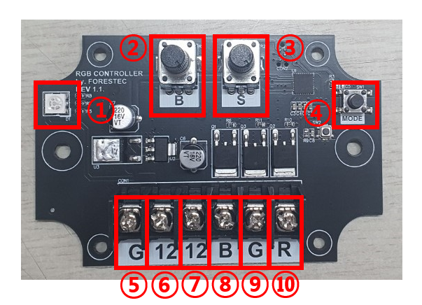 ⑩ R : RGB LED 바 빨간색 케이블 연결