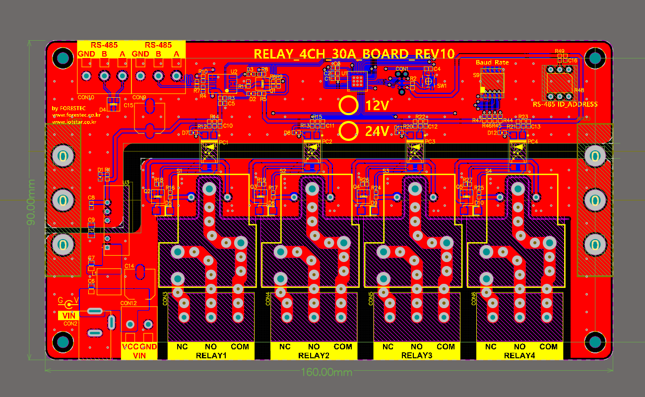 Modbus RTU RS-485 4CH 30A, 8CH 10A 릴레이 보드 : 포레스텍